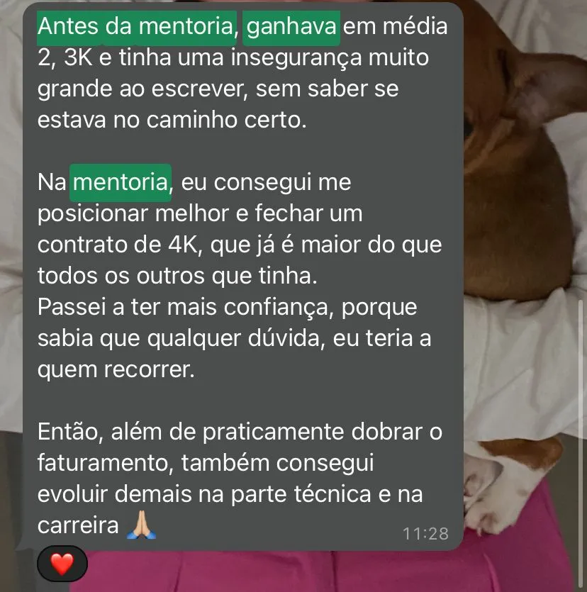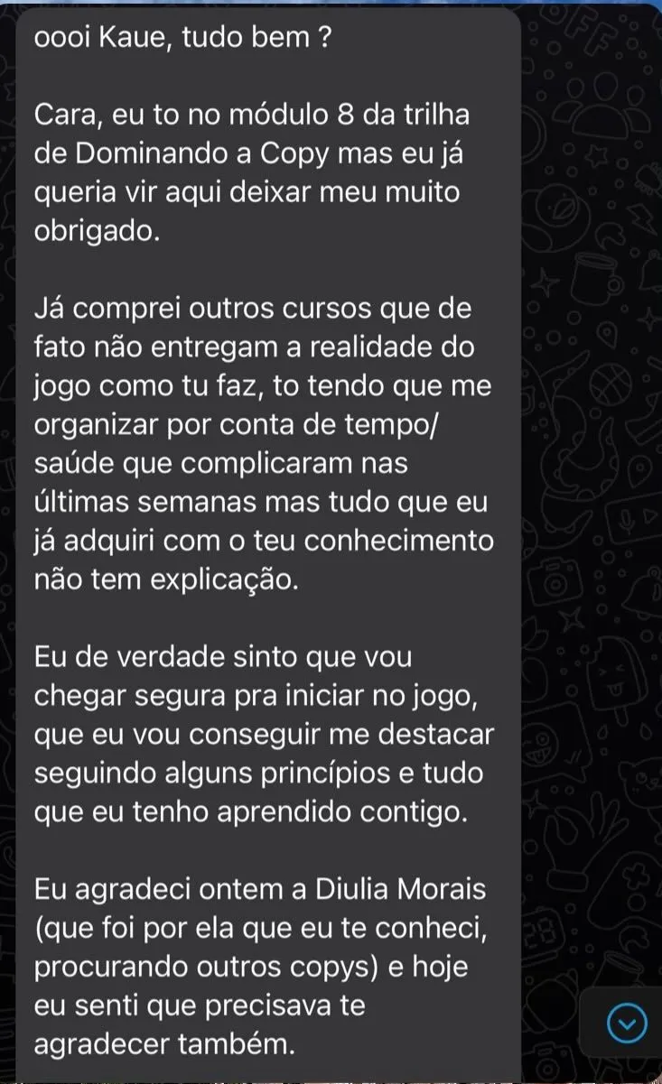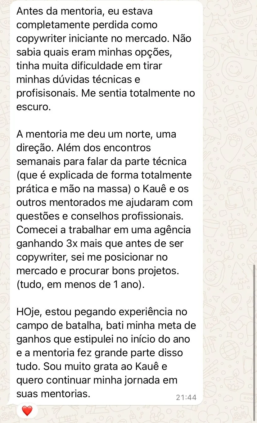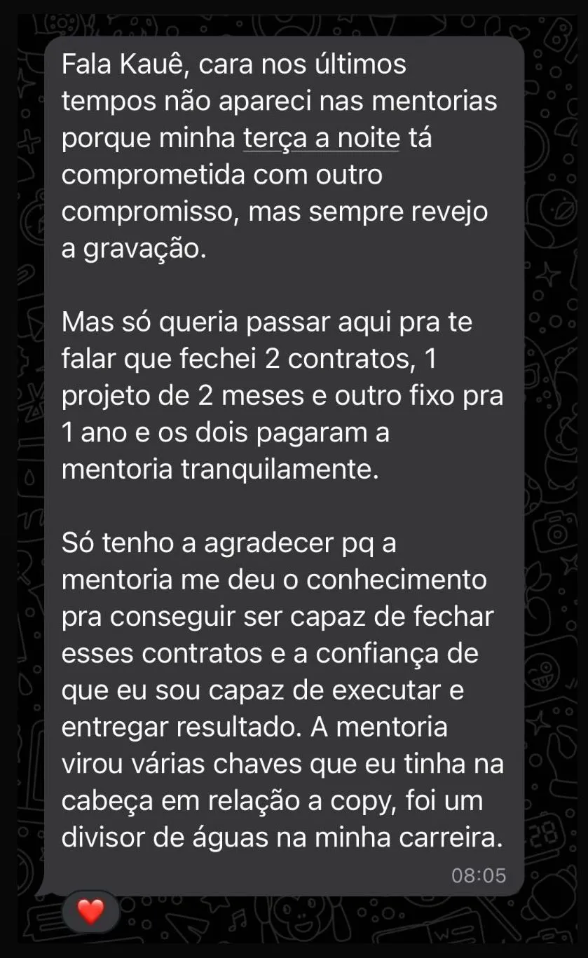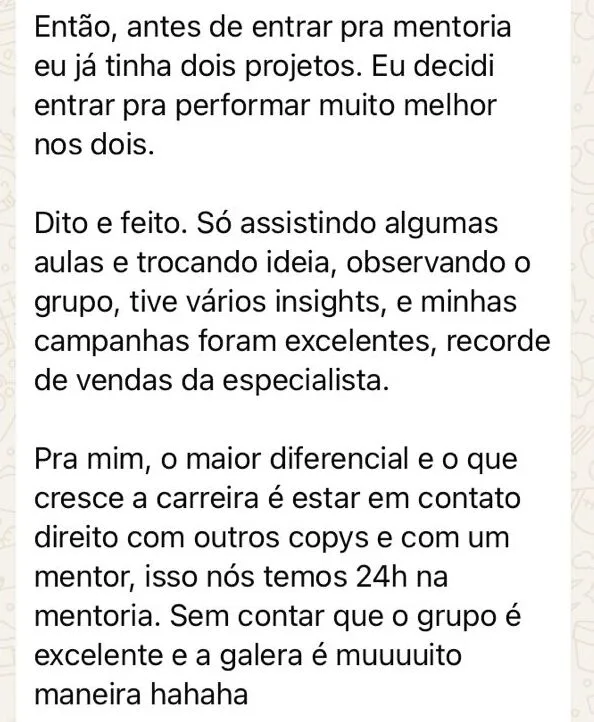 Você vai ter um acompanhamento semanal pra alavancar sua carreira e acesso ao método avançado de copywriting que vendeu mais de +50MM em lançamentos e VSL.